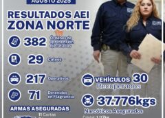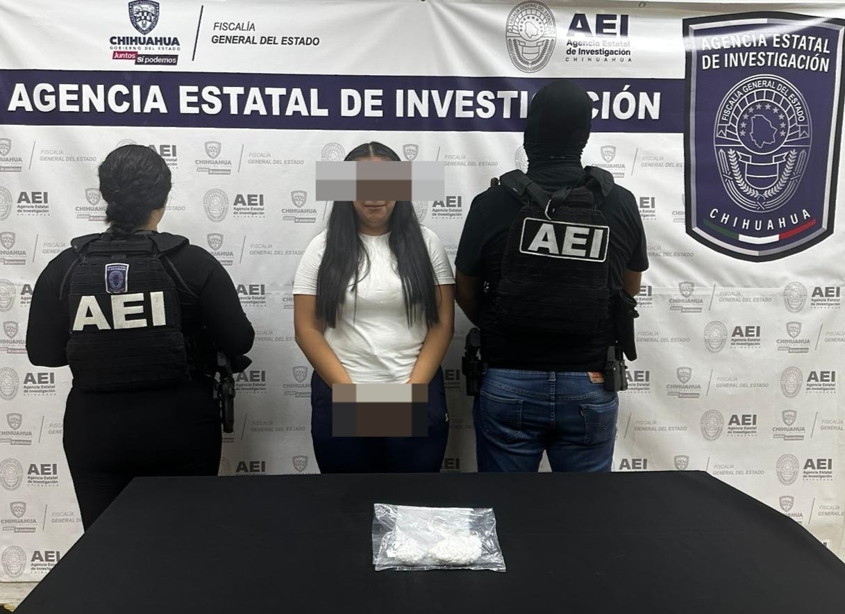Ciudad Juárez, Chih., a 04 de septiembre de 2025.- Elementos de la Agencia Estatal de Investigación, adscritos al Centro de Operaciones Estratégicas (COE), de la Fiscalía de Distrito Zona Norte, detuvieron a quien se identificó como Tania Berenice A. V., por su presunta responsabilidad en delitos contra la salud, cometidos en Ciudad Juárez.