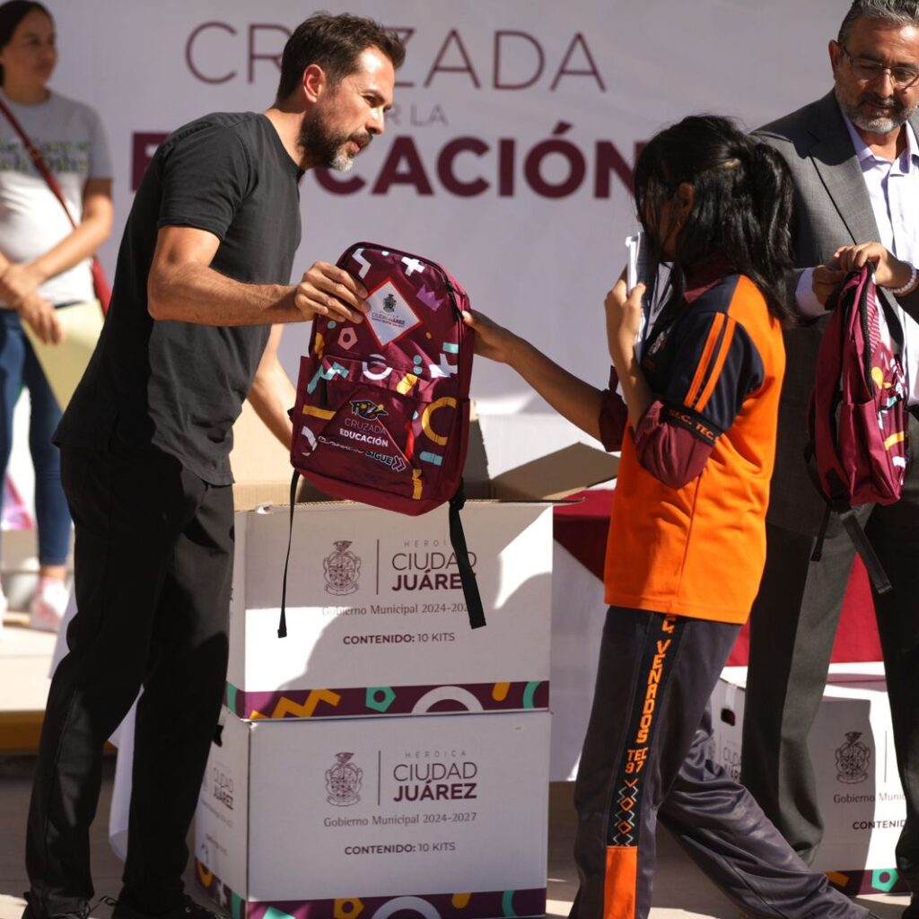 Jueves 11 de Septiembre del 2025.- En apoyo a la comunidad estudiantil de Ciudad Juárez, personal de la Dirección General de Obras Públicas hizo la entrega simbólica de mochilas, loncheras y útiles escolares a estudiantes de plantes escolares en sus turnos matutino y vespertino, como parte de la Cruzada por la Educación. En representación del Presidente Municipal, Cruz Pérez Cuéllar,…