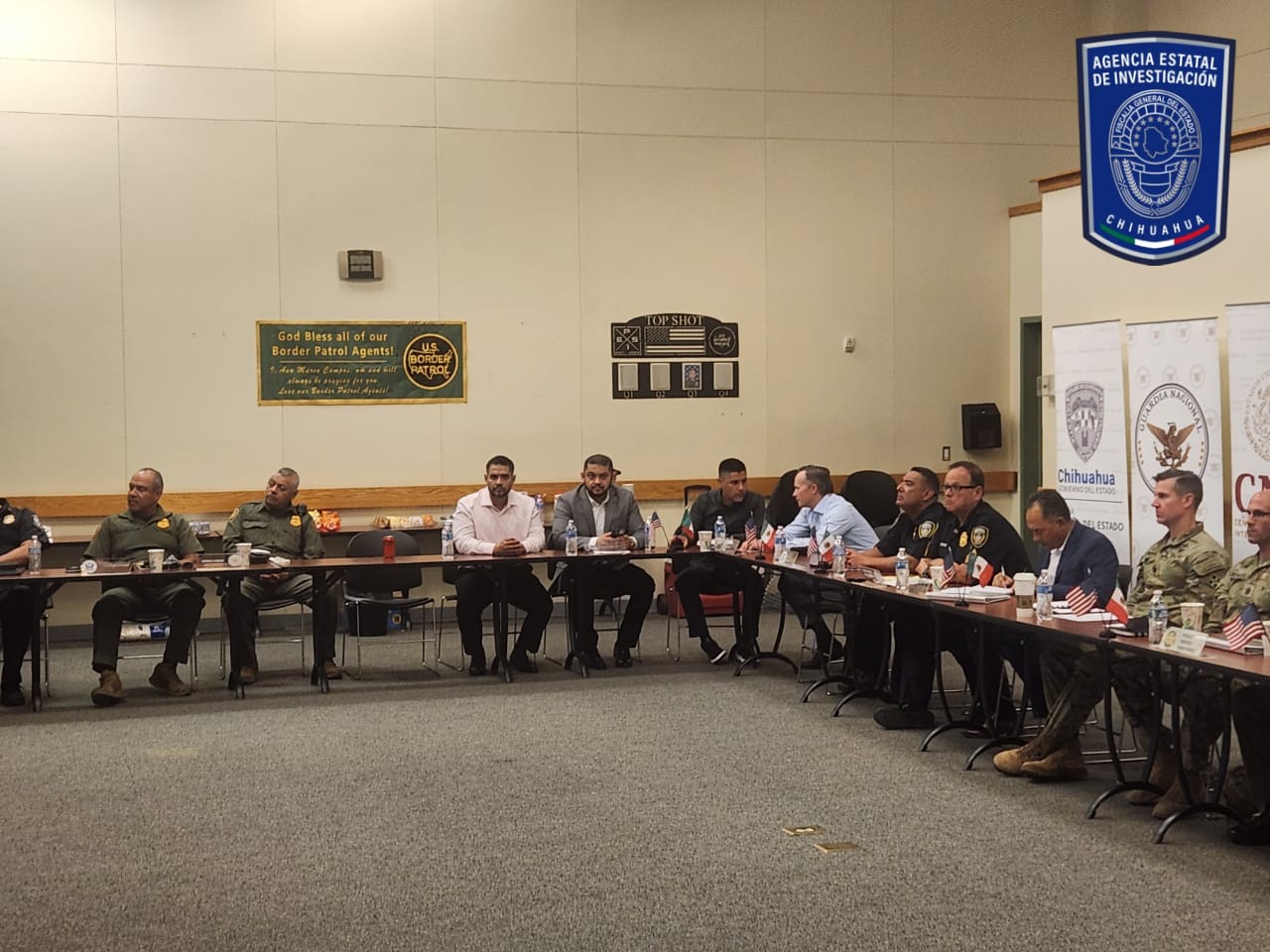 El Coordinador General de la Agencia Estatal de Investigaciones (AEI), Pedro Román Oseguera Cervantes y el Fiscal de Operaciones Estratégicas, Guillermo Arturo Zuany Portillo, participaron en la reunión binacional celebrada en las instalaciones de la Patrulla Fronteriza de El Paso, Texas.