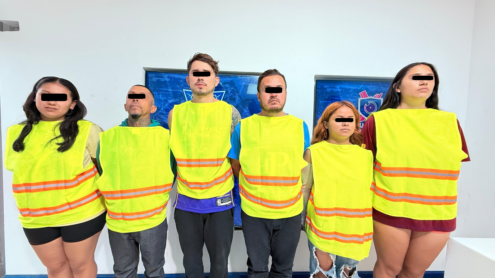 A 13 de septiembre de 2025.- Elementos de la Secretaría de Seguridad Pública Municipal adscritos al Grupo de Operaciones Especiales (GOE) capturaron a Aarón José T. M., Adrián Said R. A., Ernesto Alonso U. L., Mia Fernanda U. L., Yareli Anahí S. D. y Victoria R. L., por su presunta responsabilidad en la comisión de delitos contra la ley federal de armas de fuego y explosivos y desobediencia y resistencia de particulares.