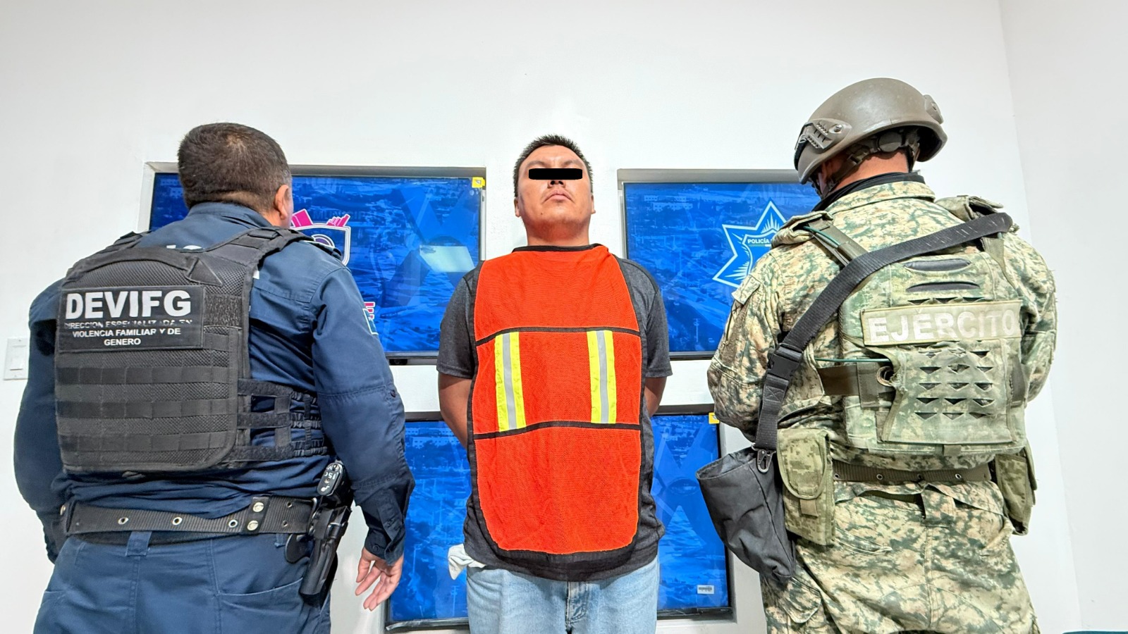 A 22 a septiembre del 2025.- Elementos de la Secretaría de Seguridad Pública Municipal (SSPM) en coordinación con personal de la Secretaria de la Defensa Nacional (SEDENA) capturaron a José Andrés F. S., por su presunta responsabilidad en la comisión de los delitos de robo de vehículo en grado de tentativa y usurpación de funciones.