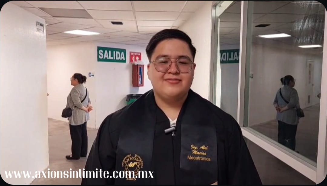 Ciudad Juárez, Chih., 25 de septiembre de 2025.– La historia de Abel Alejandro Macías Alvarado, recién graduado de la carrera de Mecatrónica en la Universidad Tecnológica de Ciudad Juárez (UTCJ), es un testimonio de perseverancia, valores familiares y fe en los sueños. Con un título en la mano y una sonrisa serena, asegura que este momento representa “uno de los más bonitos” de su vida, pues detrás de su logro hay noches de desvelo, sacrificios y, sobre todo, el acompañamiento de su madre, a quien reconoce como su mayor inspiración.
