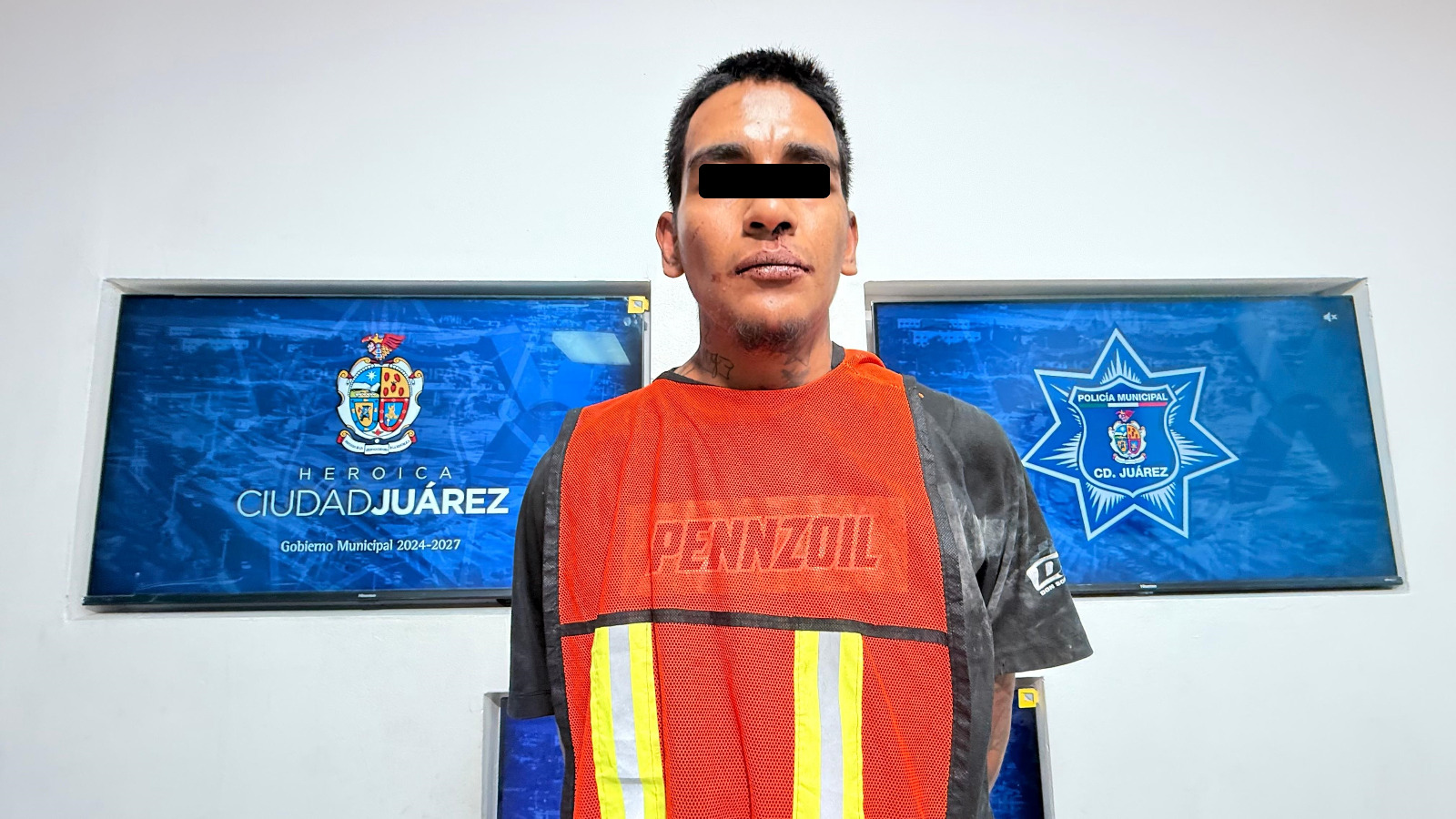 A 28 de agosto de 2025.- Elementos de la Secretaría de Seguridad Pública Municipal, adscritos a la Estación de Policía del Distrito Centro, detuvieron a un hombre identificado como Armando C. C., por su presunta responsabilidad en la comisión del delito de daños.