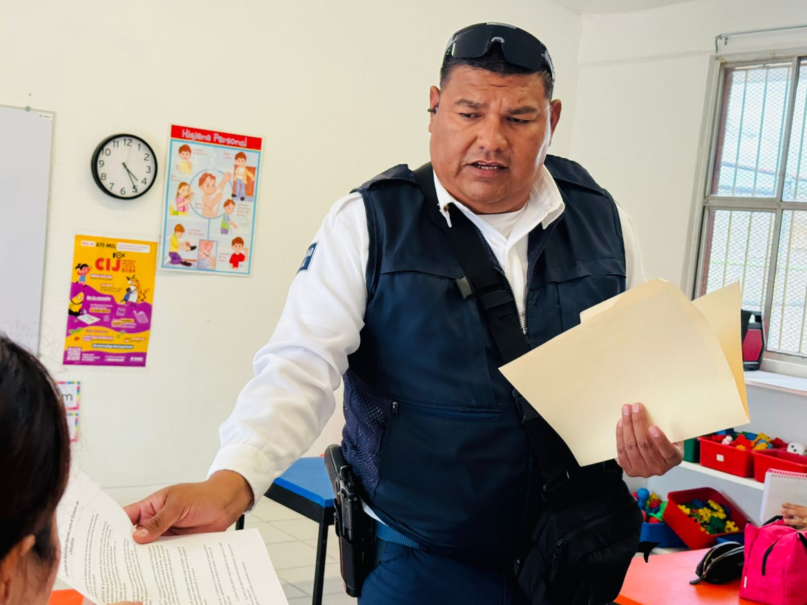 Brinda Seguridad Vial charla sobre brigadas escolares a maestros del Preescolar Nezahualcóyotl
