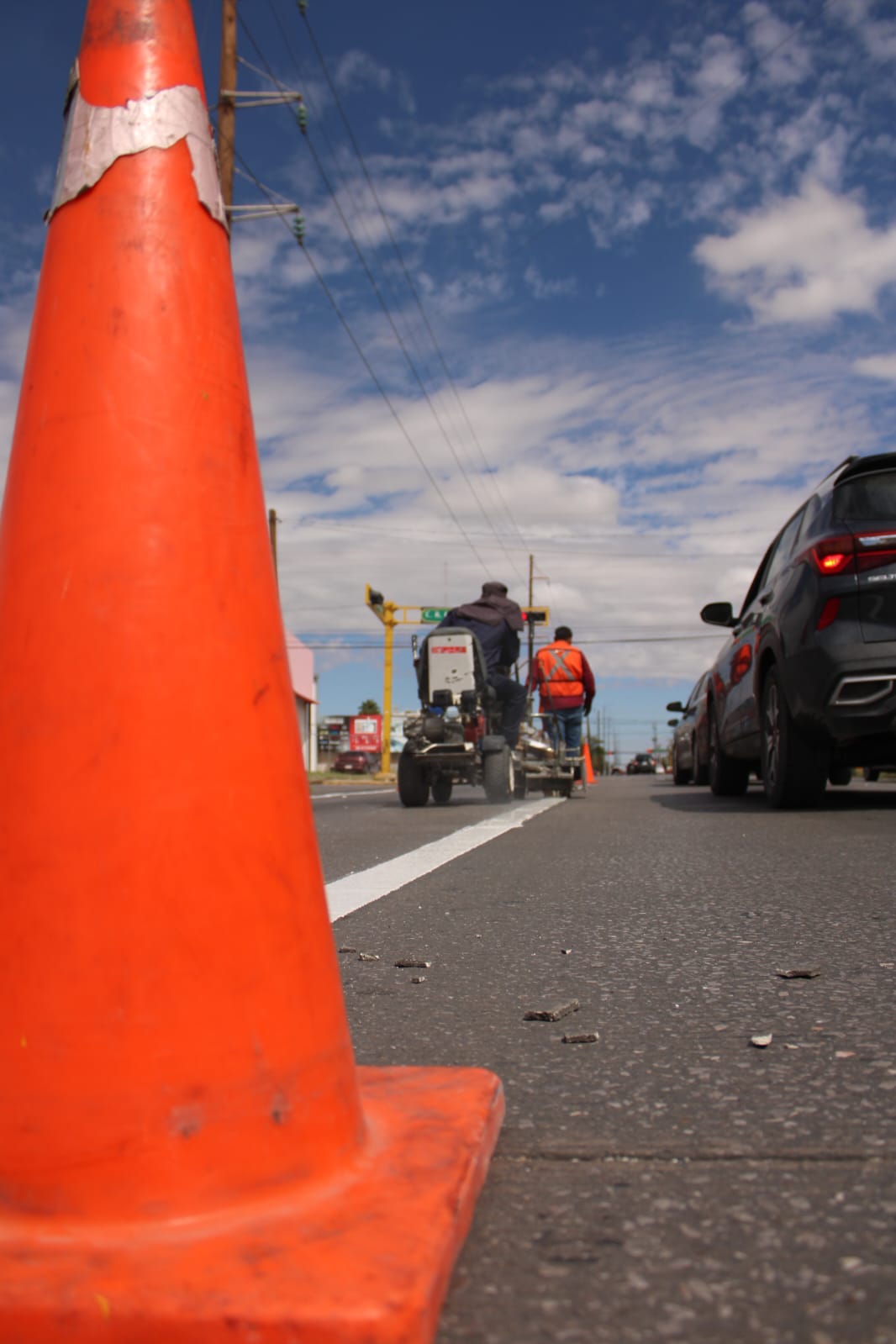 Control de Tráfico pinta división de carriles sobre la avenida Plutarco Elías Calles