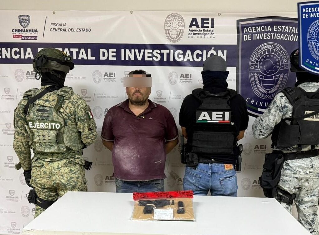 Ciudad Juárez, Chih., a 05 de octubre de 2025.- Elementos de la Agencia Estatal de Investigación adscritos a la Fiscalía de Distrito Norte, detuvieron a una persona de nombre Luis Agustín H. R., por delitos contra la Ley Federal de Armas de Fuego y Explosivos. La detención del presunto responsable de 34 años de edad, fue en el cruce de…