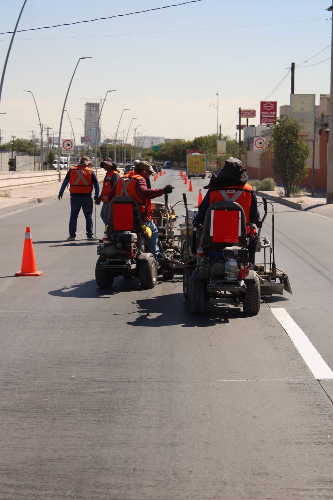 Por otro lado, se efectuó el pintado de la división de carriles sobre la avenida Teófilo Borunda, en el tramo comprendido desde el bulevar Óscar Flores hasta la avenida Tecnológico, de oriente a poniente y de poniente a oriente, con el objetivo de mantener una circulación más ordenada por la zona.
