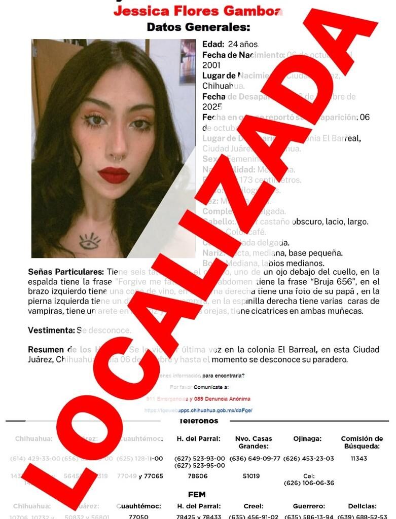 Read MoreLocaliza FEM Zona Norte sana y salva a Jessica F.G., mujer con reporte de ausencia en Ciudad Juárez