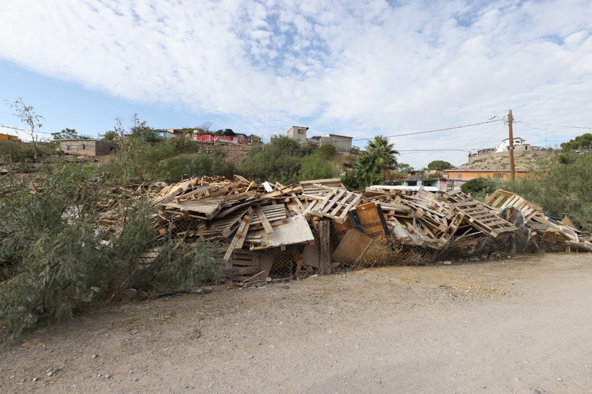 “Se trata de un importante acumulamiento de residuos de tarimas justo sobre el bordo del río Bravo. Estamos a unos metros de propiedad federal y la importancia de su remoción radica tanto en cuestiones de seguridad como de salud pública. Este tipo de material, con las lluvias y la humedad, genera condiciones propicias para la presencia de plagas nocivas”, explicó Solís.