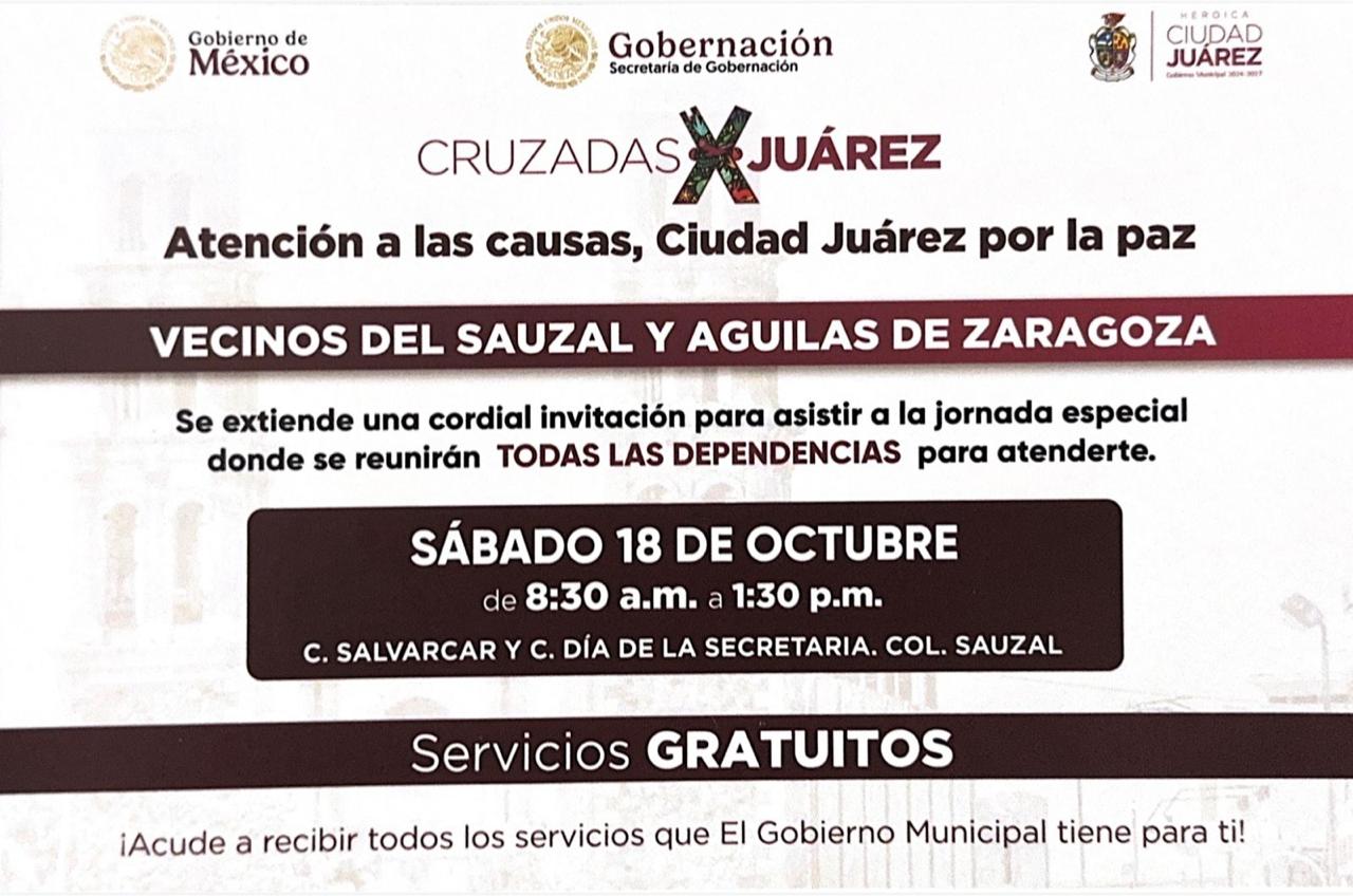 «Será este sábado 18 octubre que estemos todos ofreciendo los servicios del Gobierno Municipal en el espacio situado en las calles Salvarcar y Día de la Secretaria, en la colonia El Sauzal, a las 8:30 de la mañana y hasta la 1:30 de la tarde», señaló.