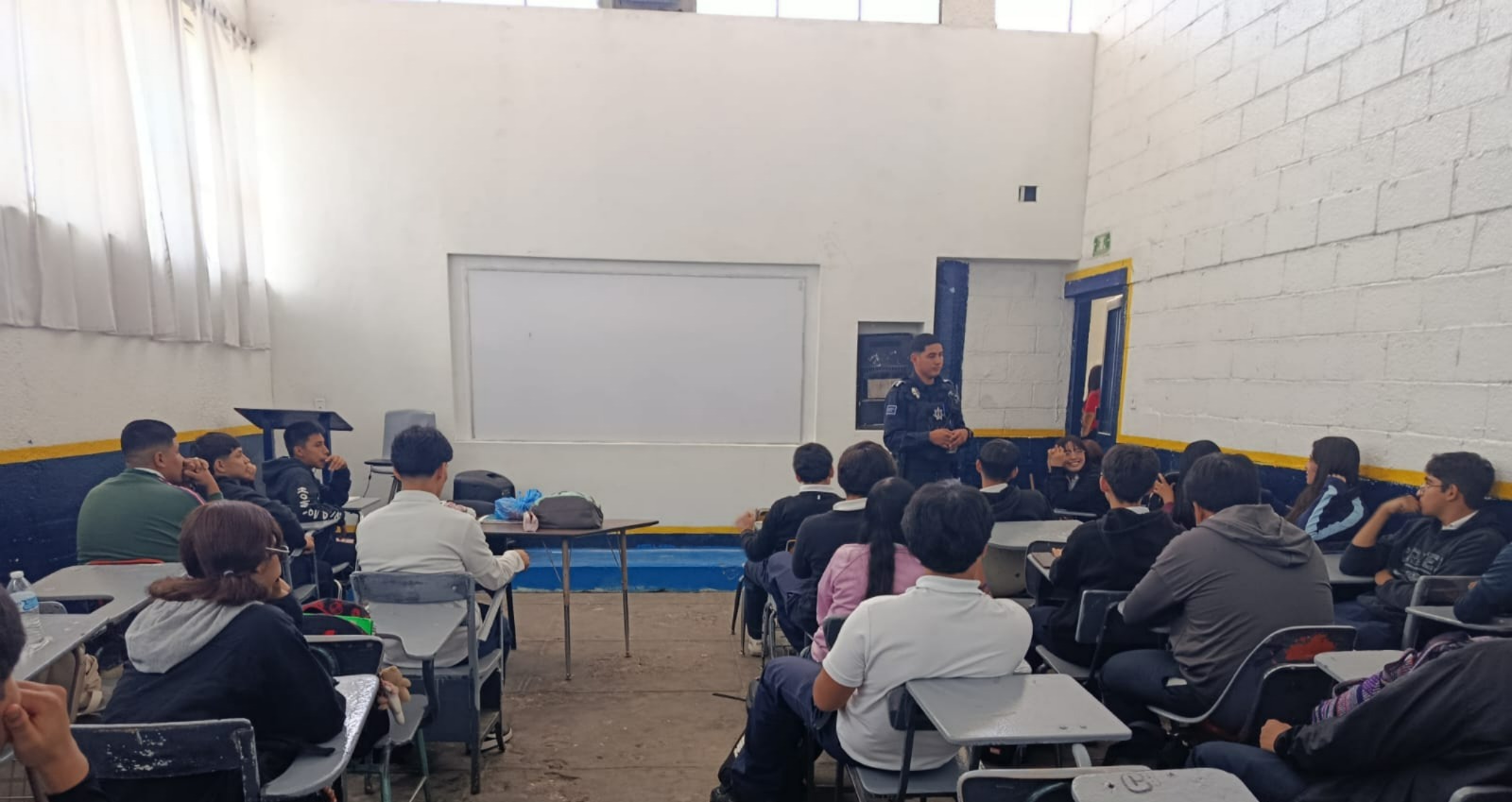 Jueves 16 de Octubre del 2025.- La Secretaría de Seguridad Pública Municipal, a través de la Dirección Operativa y su área de Prevención Social, impartió una plática preventiva en la preparatoria Guerreros CBTCJ, enfocada en los riesgos y responsabilidades del uso de Internet.