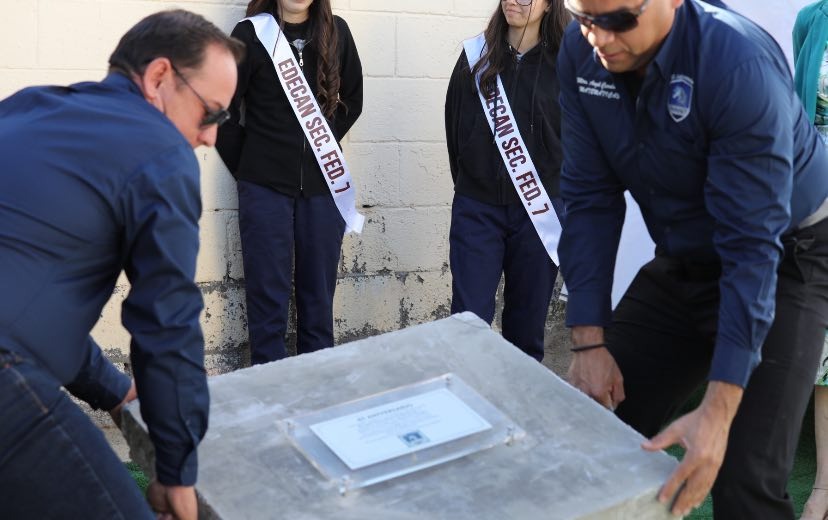 Con emoción, estudiantes y maestros colocaron una cápsula del tiempo, la cual se volverá a abrir en el 2035, en dicho recipiente se colocaron artículos, información fotos y cartas que identifican en la actualidad a la Federal 7.