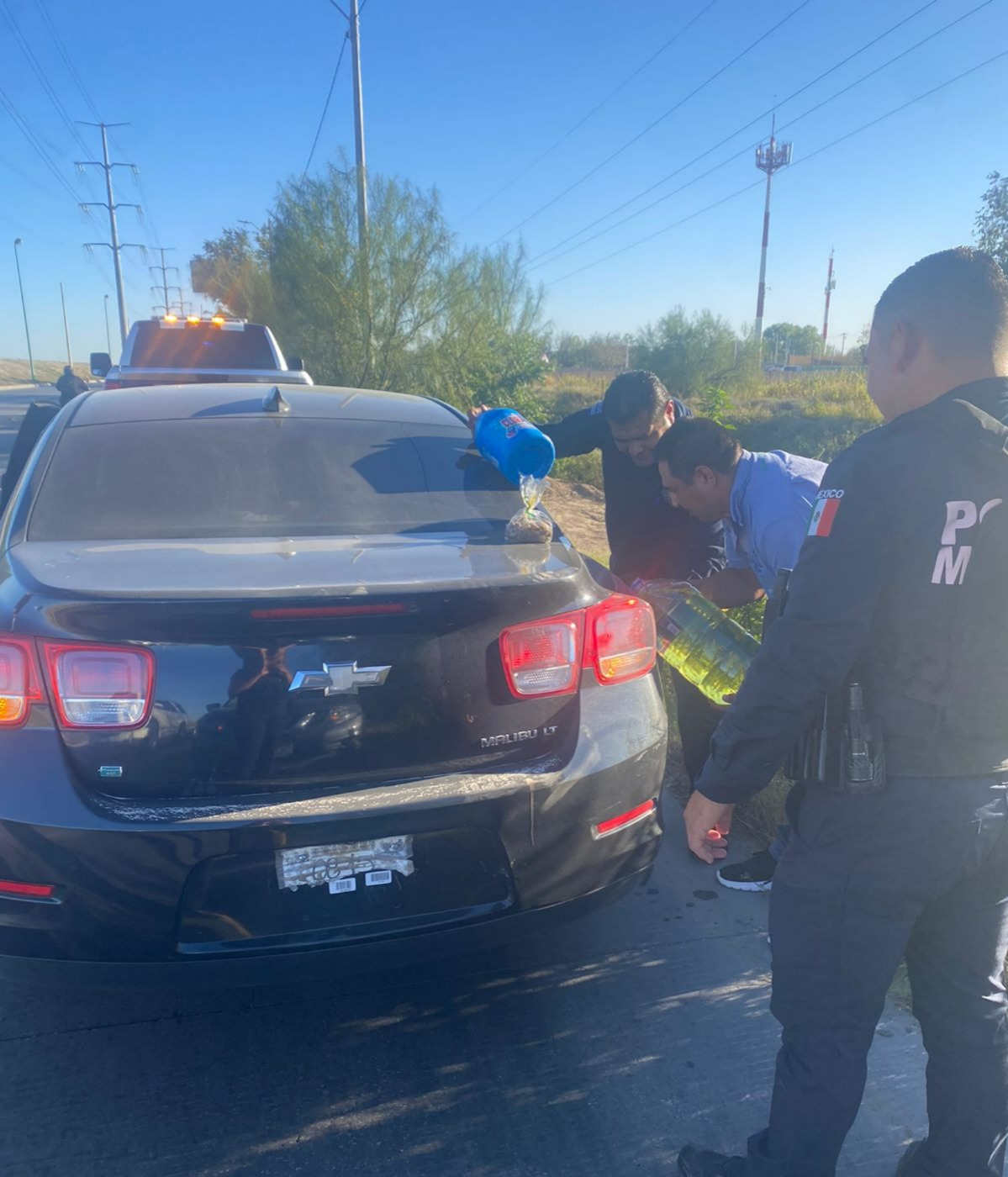 Los hechos ocurrieron cuando unidades pertenecientes a la Policía Comercial e Industrial, fueron interceptados por una ciudadana, la cual les manifestó que su vehículo de la marca Chevrolet Malibú, color negro, se había quedado sin combustible, imposibilitando que siguiera su marcha.