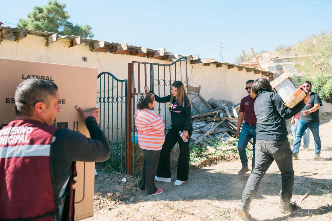 La solidaridad llegó al norponiente de la ciudad donde Rubí Enríquez, Presidenta del Sistema para el Desarrollo Integral de la Familia del Municipio de Juárez (DIF), entregó apoyos a las familias damnificados por las lluvias que azotaron nuestra ciudad el pasado verano.