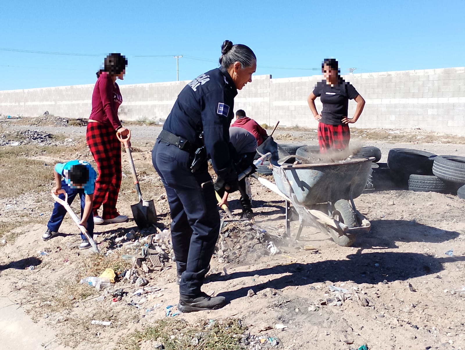 La jornada de limpieza, que se llevó a cabo con entusiasmo y dedicación, contó con la participación activa de miembros de la policía comunitaria y la patrulla juvenil, adscritos a la Dirección de Prevención Social, equipados con rastrillos, palas, picos y carretillas, policías y jóvenes trabajaron hombro a hombro para despejar el terreno, removiendo escombros, llantas y maleza.
