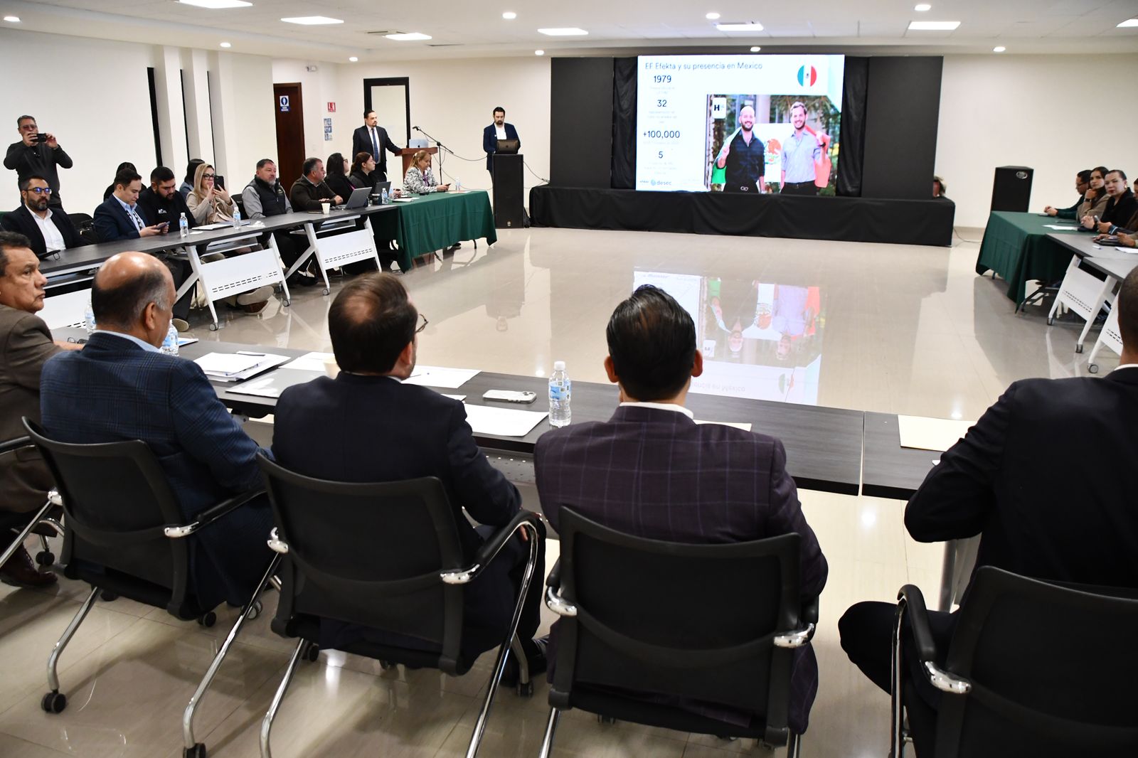 En la reunión se tuvo la presencia del secretario de Educación y Deporte, Francisco Hugo Gutiérrez Dávila; el secretario de Innovación y Desarrollo Económico, Ulises Fernández Gamboa; el director general para Latinoamérica en EF Efekta, Eduardo Santos; y rectoras y rectores de las Universidades Tecnológicas y la Politécnica.
