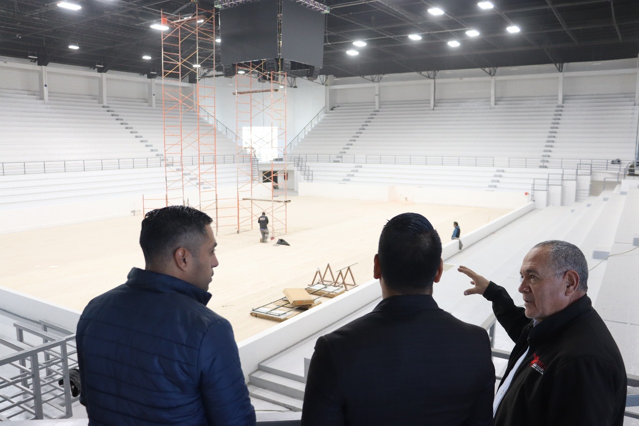 Regidores de las comisiones de Hacienda y de Obras Públicas, Antonio Domínguez Alderete, Luz Clara Cristo Sosa y Héctor Hugo Avitia pudieron constatar el avance en la remodelación de este histórico edificio deportivo en Ciudad Juárez, obra que lleva un avance del 70 por ciento.