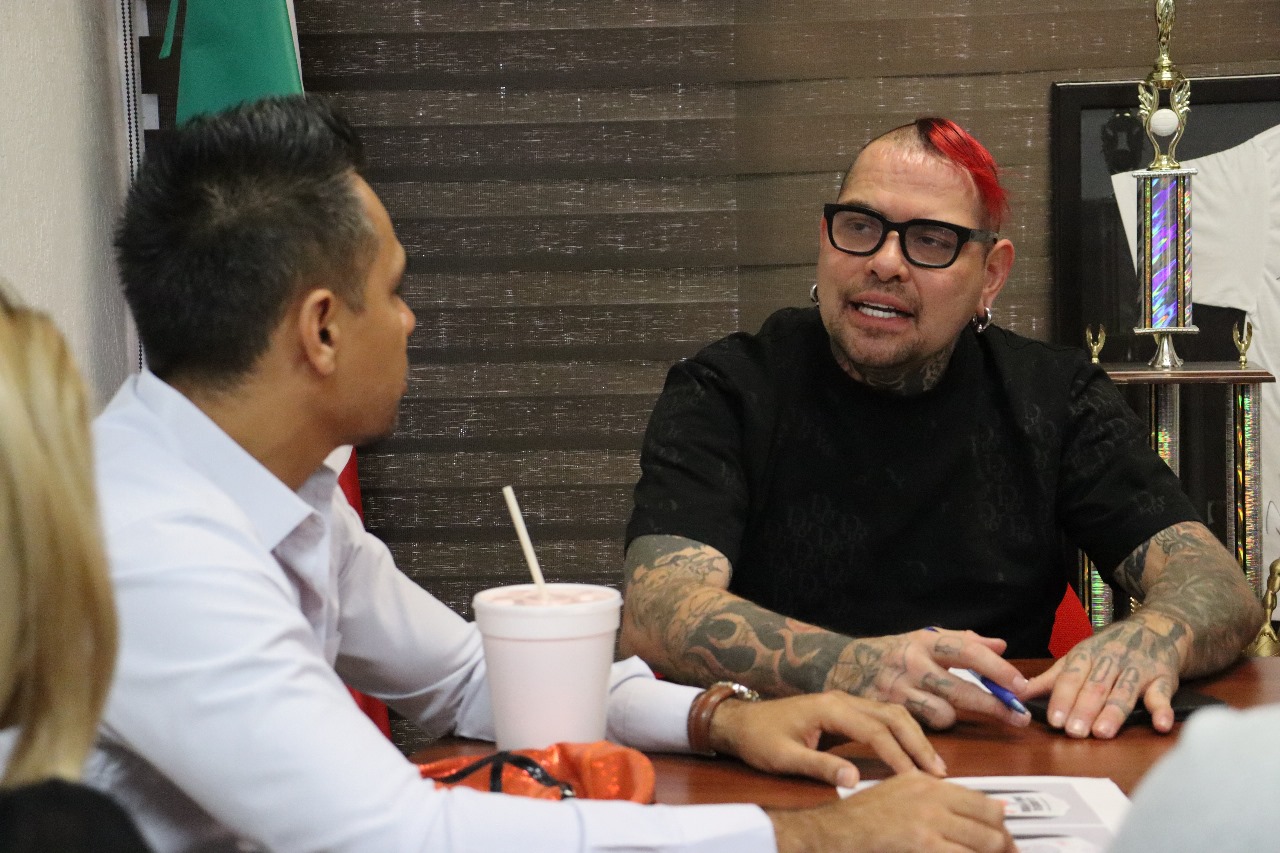 Miércoles 12 de Noviembre del 2025.- El luchador juarense José Julio Pacheco “Pagano”, visitó al director del Instituto Municipal de Deporte y Cultura Física de Juárez, Juan Carlos Escalante, para entregarle un reconocimiento por su dedicación al deporte, en especial a la lucha libre.