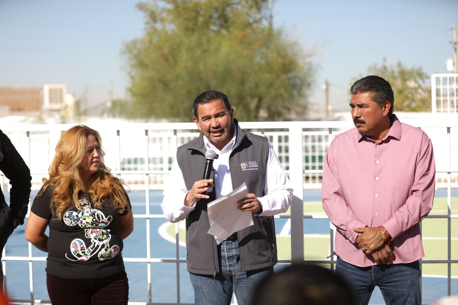 En las entregas también estuvieron presentes la sindica Ana Carmen Estrada; el director de Participación Ciudadana, Sebastián Aguilera; Omar Esparza, director de Edificación en Obras Públicas; Cesar Tapia, director general de Servicios Públicos, así como el regidor Alejandro Acost