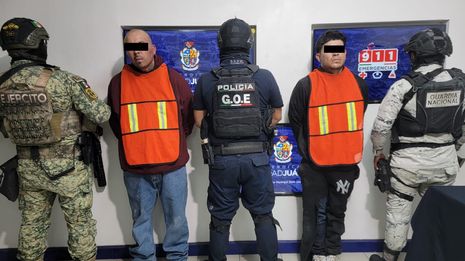 A 19 de noviembre de 2025.- Elementos de la Secretaría de Seguridad Pública Municipal, arrestaron a Joel Jesús M. R. y Donizetti Guillermo S. H. por su presunta responsabilidad en la comisión de los de delitos de robo con violencia y contra la ley federal de armas de fuego y explosivos.