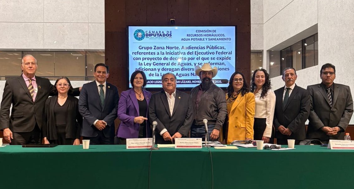 El diputado federal Alejandro Pérez Cuéllar, presidente de la Comisión de Asuntos Frontera Norte, participó este jueves en las Audiencias Públicas del Grupo Zona Norte convocadas por la Comisión de Recursos Hidráulicos, Agua Potable y Saneamiento de la Cámara de Diputados, como parte del análisis de la Iniciativa del Ejecutivo Federal para expedir la Ley General de Aguas y reformar diversas disposiciones de la actual Ley de Aguas Nacionales.