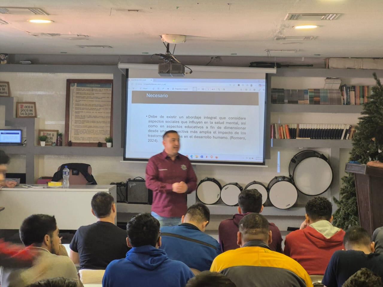A 21 de noviembre de 2025.- La Secretaría de Seguridad Pública Municipal, a través de la Dirección de Prevención Social, llevó a cabo pláticas de concientización sobre salud mental en el Centro Integral para Adictos y Alcohólicos en Recuperación A.C., esto como parte de los trabajos que se realizan en materia de prevención de las violencias y adicciones.