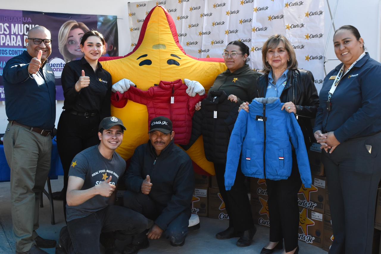 El Gobierno del Estado, a través del DIF Estatal, recibió la donación de 723 chamarras por parte de la empresa Carl’s Jr., destinadas a estudiantes de 194 escuelas de educación básica en Ciudad Juárez, como parte de la campaña “Juntos contra el Frío” 2025.