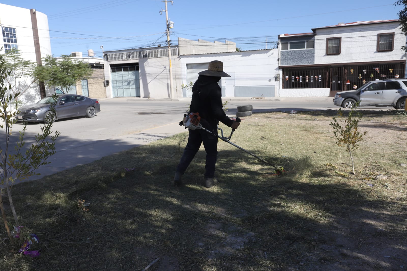 Con el propósito de mantener en buen estado los espacios públicos de la ciudad, la Dirección de Parques y Jardines llevó a cabo labores de mantenimiento en el parque lineal del fraccionamiento Terrazas del Valle, en la zona sur de Juárez.