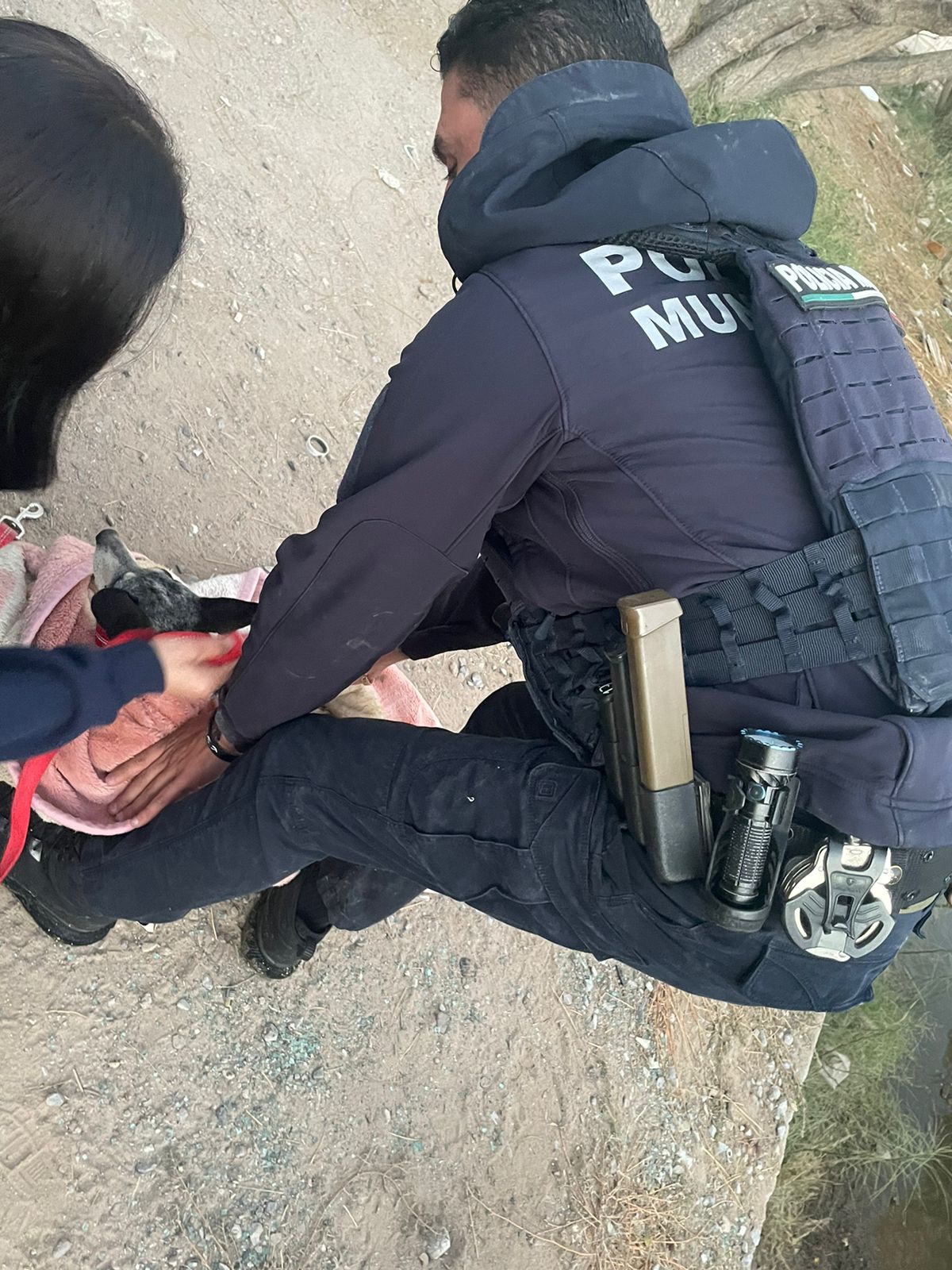 A 06 de diciembre de 2025.- En el marco de sus funciones de servicio a la comunidad, elementos de la Secretaría de Seguridad Pública Municipal ejecutaron con éxito el rescate de un can que se encontraba atrapado en un canal de irrigación en la colonia Del Márquez.