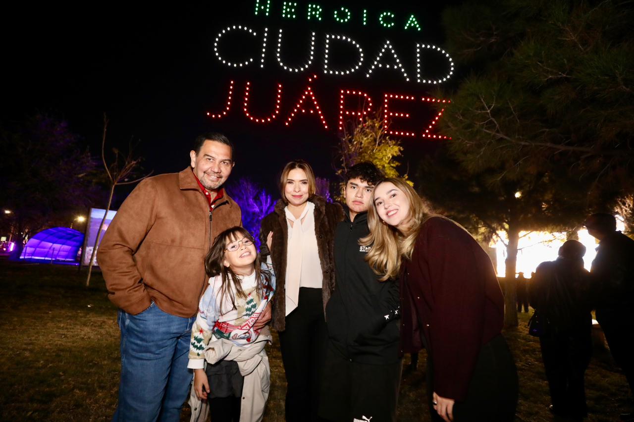 Ciudad Juárez.— La noche se iluminó con miles de luces, pero también con los rostros emocionados de las familias juarenses que llenaron el Parque DIF para el arranque de “Navidad a lo Mexa”, evento inaugural encabezado por el presidente municipal Cruz Pérez Cuéllar, su esposa Rubí Enríquez, presidenta del DIF Municipal, y sus hijos Sebastián y Regina. La villa decembrina abrió sus puertas este 7 de diciembre de 2025, y desde el primer minuto quedó claro que la magia navideña había llegado para quedarse hasta el 6 de enero.