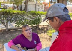 La visita la hizo junto con la regidora Fernanda Avalos Medina y personal del Instituto Municipal del Deporte de Juárez, donde comentó que se observaron los trabajos en esta primera etapa, los cuales son la construcción de una cancha principal de gran formato, la adecuación de dos canchas laterales, la instalación de duela deportiva en la cancha principal y en la cancha remodelada.