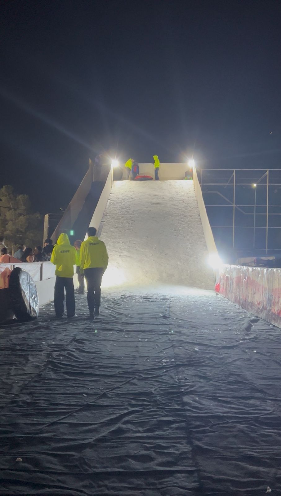 El Gobierno del Estado, a través del Parque Central, invita a la comunidad juarense a disfrutar del tobogán de hielo de 7 metros de altura y 30 de largo, una de las principales atracciones de la temporada navideña instalada en el recinto.