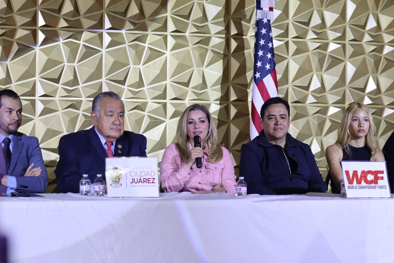 Jueves 11 de Diciembre del 2025.- El Instituto Municipal del Deporte y Cultura Física de Juárez y World Championship Fights presentaron en conferencia de prensa la “Gran Noche de Estrellas”, cartelera que se efectuará el próximo 13 de diciembre en el remodelado Gimnasio Municipal Josué Neri Santos.