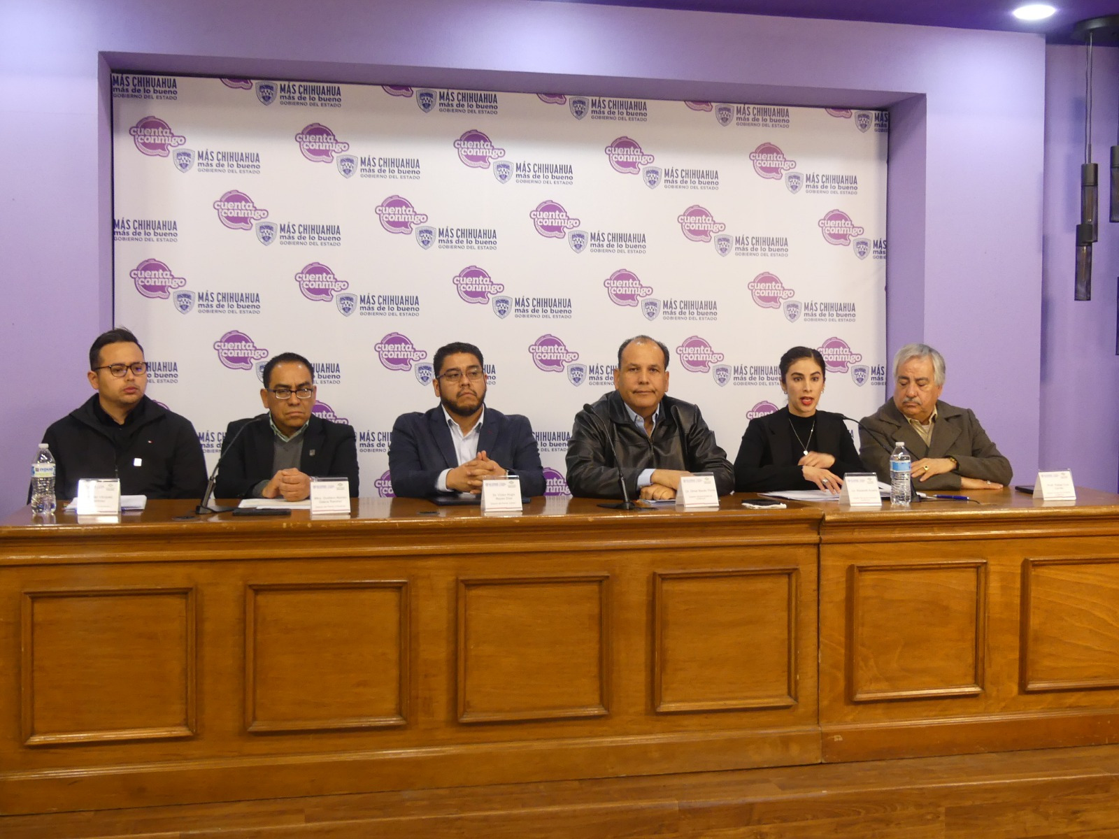 Durante la conferencia de prensa el titular del Conalep estuvo acompañado por Víctor Hugo Reyes Díaz, director del plantel Juárez I; Gustavo Alonso Gasca Ramírez, director del plantel Chihuahua I; Rafael Díaz Carrillo, director estatal de Formación Académica; Elizabeth Azaeta, subjefa técnica de Formación Académica; y Alan Vázquez Martínez, director de Capacitación y Planeación.