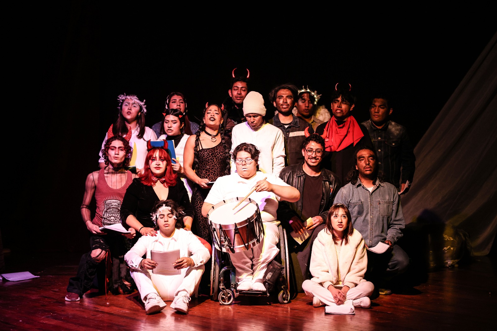 Martes 16 de Diciembre del 2025.- Con una sala atenta y una respuesta entusiasta del público, la obra “Diablo a la diabla” se presentó con éxito la noche de ayer en el Centro Cultural Ernesto Ochoa Guillemard, como parte del programa Salvemos los lunes de teatro que impulsa el Instituto para la Cultura del Municipio de Juárez (IPACULT).