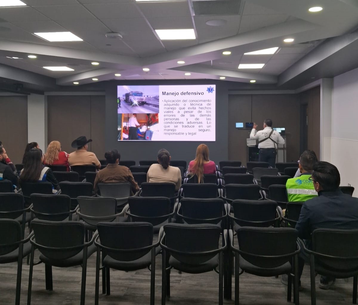 Durante la charla se abordaron temas esenciales sobre las técnicas y principios fundamentales del manejo defensivo, con el objetivo de mejorar la seguridad vial de los trabajadores que se trasladan a su lugar de trabajo, así como prevenir accidentes y situaciones de riesgo en la carretera.