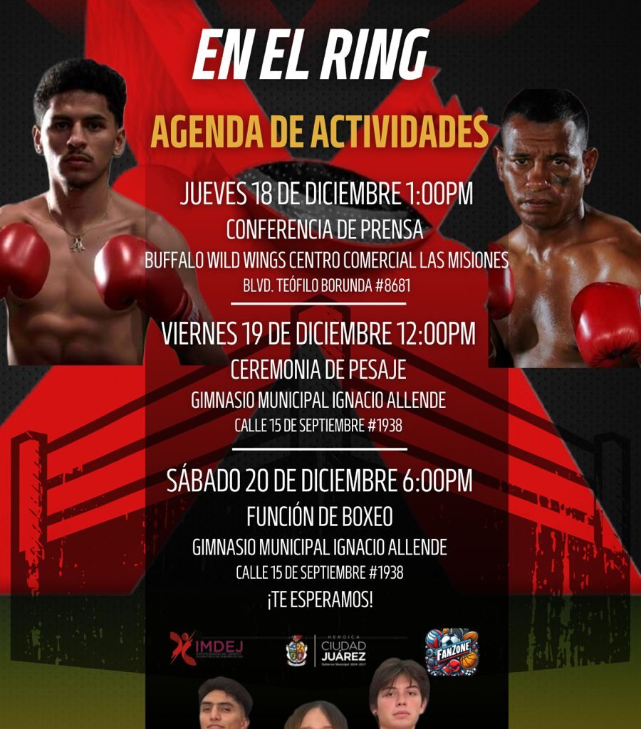 Viernes 19 de Diciembre del 2025.- Este viernes los peleadores y peleadoras que engalanan la cartelera “Honor y Furia en el Ring” aprobaron su pase por la báscula. Con este pesaje se confirma que han alcanzado exitosamente el peso requerido para la función de mañana sábado 20 de diciembre. Serán nueve peleas que se celebrarán en el Gimnasio Municipal Ignacio…