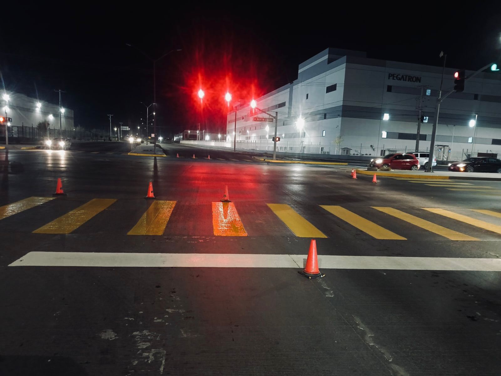 Las labores incluyeron la renovación de pasos peatonales, cordones de banqueta y líneas de frenado, con el objetivo de incrementar la seguridad para peatones y conductores.