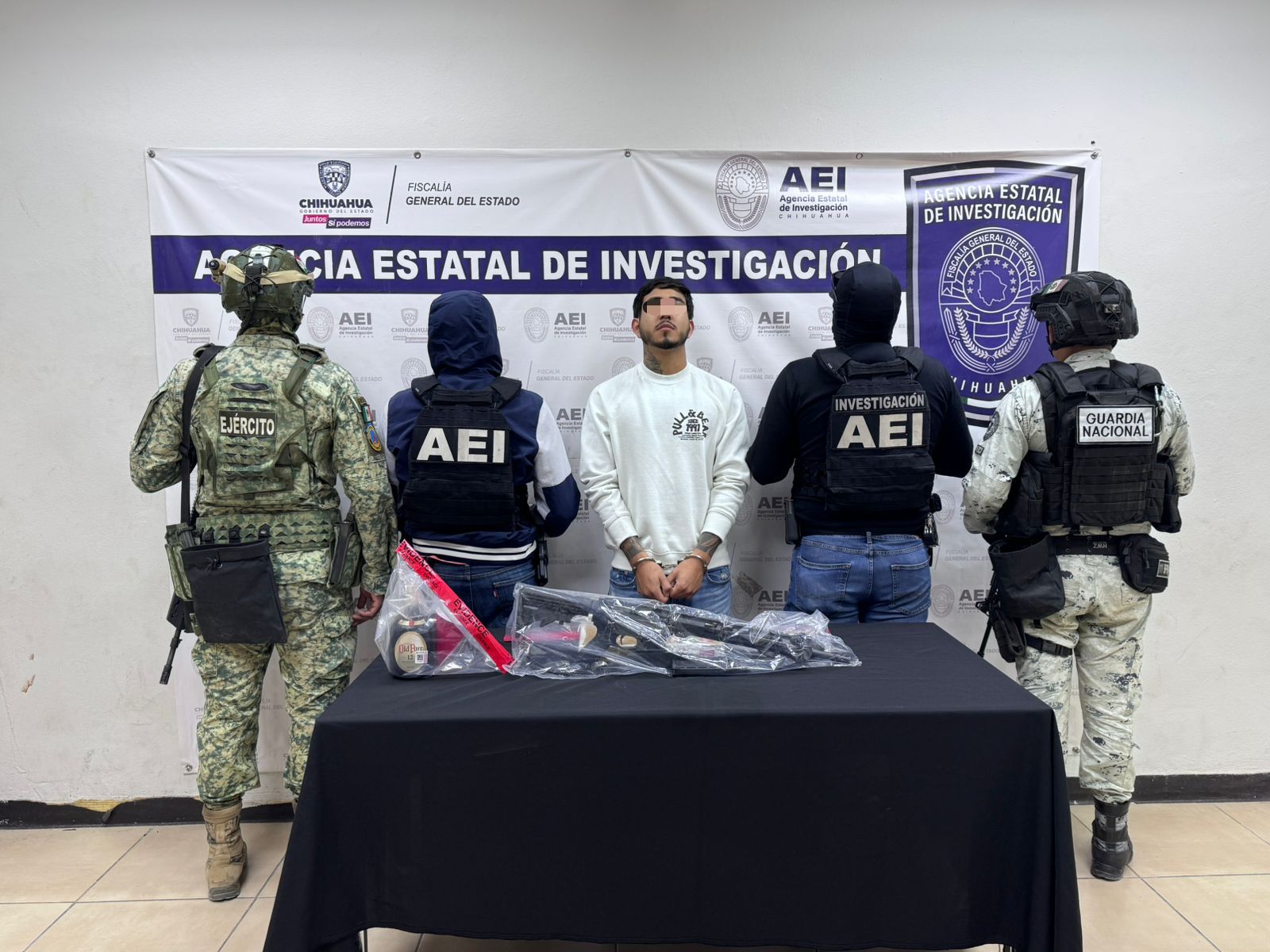 Por medio de los operativos coordinados con elementos de la Guardia Nacional y del Ejército Mexicano, se arrestó a dicha persona de 20 años de edad, en la calle Marfil de la colonia Libertad, de Ciudad Juárez.