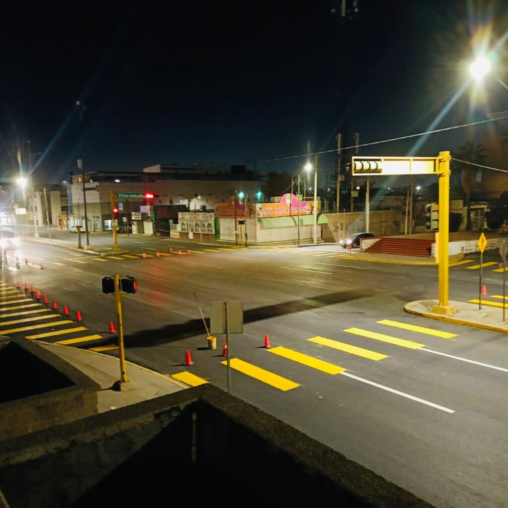 Martes 30 de Diciembre del 2025.- Trabajadores del área de Control de Tráfico, de la Coordinación General de Seguridad Vial, se encargaron de pintar señalamientos viales sobre las calles Ing. David Herrera Jordán y General Rivas Guillén. Las labores se realizaron durante el turno nocturno, lapso de tiempo en el que le dieron mantenimiento a pasos peatonales, líneas de frenado…
