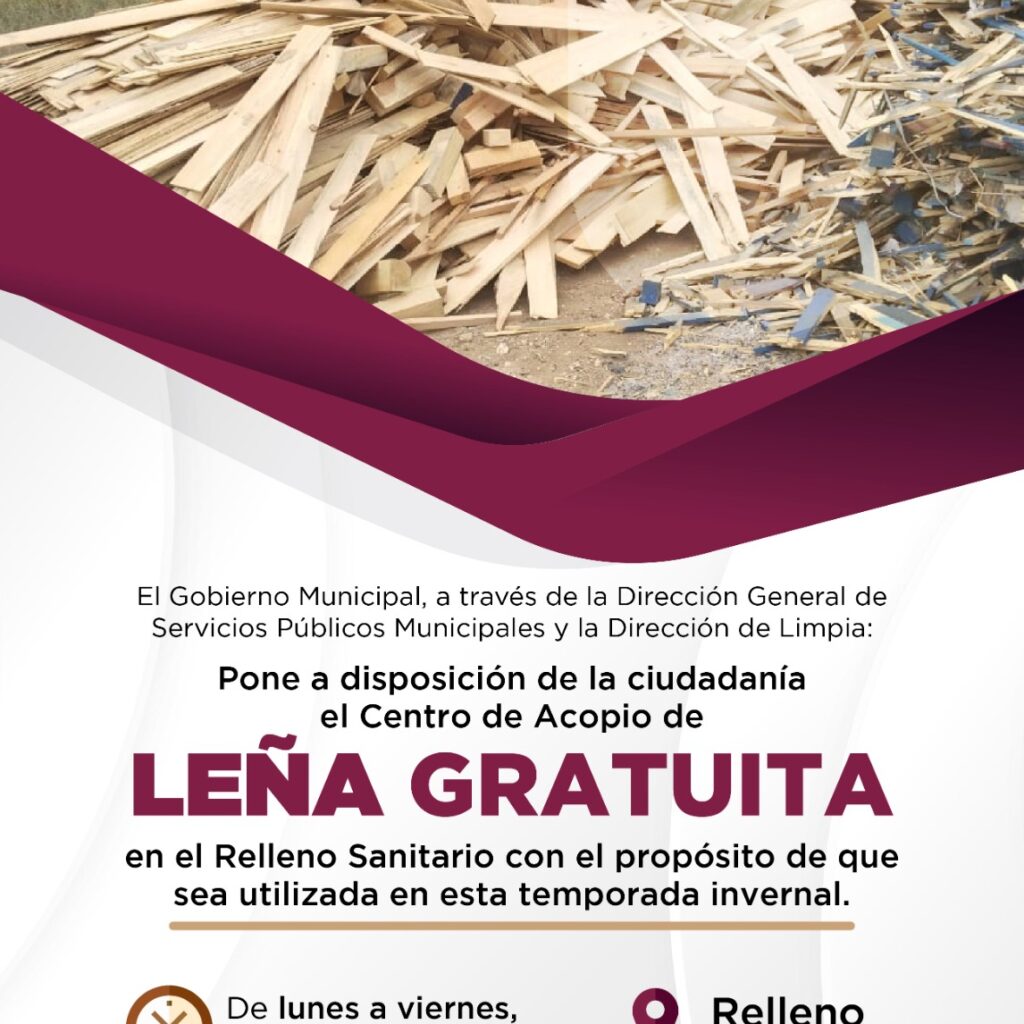 Viernes 21 de Noviembre del 2025.- La Dirección General de Servicios Públicos Municipales, a través de la Dirección de Limpia, pone a disposición de la ciudadanía leña gratuita en el Centro de Acopio del Relleno Sanitario. El titular de la dependencia, Gibran Solís Kanahan, señaló que debido a que en la temporada invernal mucha gente utiliza la madera para mitigar…