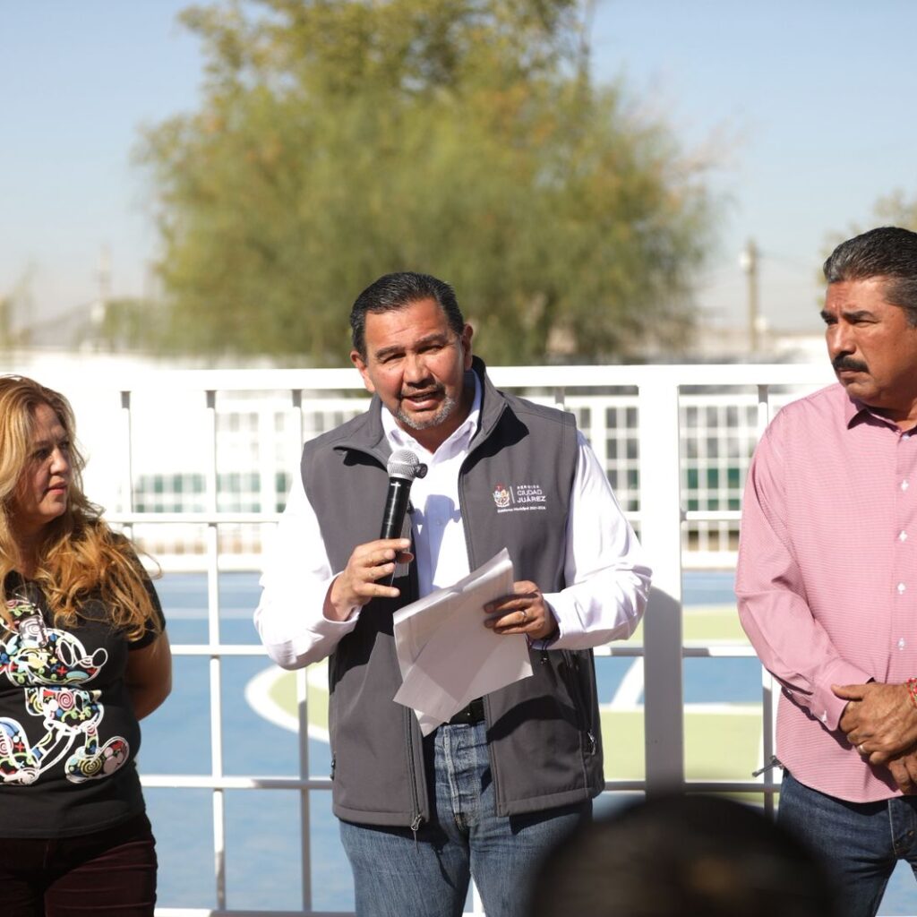 Sábado 15 de Noviembre del 2025.- Como parte de las obras que lleva a cabo el Sistema de Urbanización Municipal Adicional (SUMA), este día, el Presidente Municipal, Cruz Pérez Cuéllar, entregó la calle Apaches, en la Unidad Habitación Paso del Norte. El Alcalde mencionó que los habitantes del lugar aprovecharon el Programa 60-40, a través del cual el Municipio aporta…