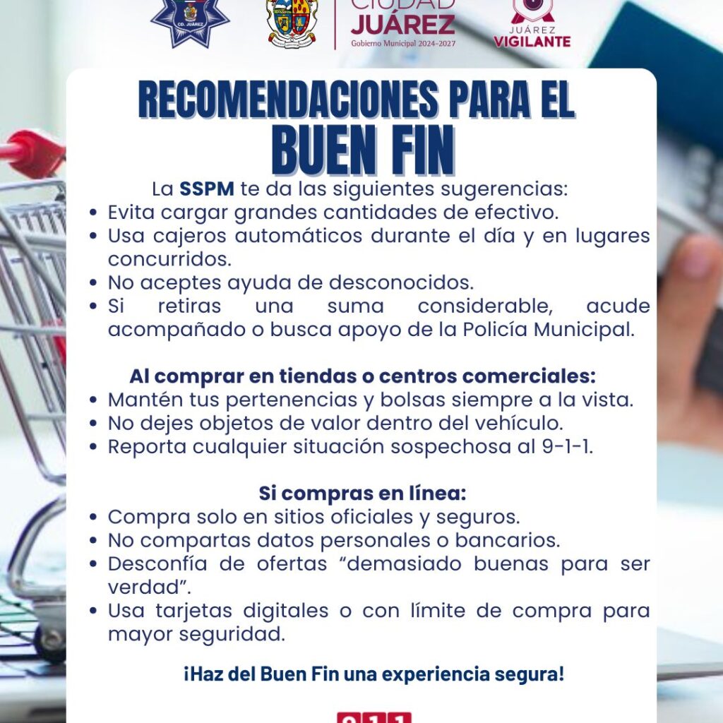 Con motivo del Buen Fin 2025, la Secretaría de Seguridad Pública del Estado (SSPE) hace un llamado a la ciudadanía a extremar precauciones al realizar compras en línea o en redes sociales, ante la proliferación de páginas apócrifas y el incremento de fraudes digitales. El periodo de rebajas y promociones estará vigente del 13 al 17 de noviembre, por lo…