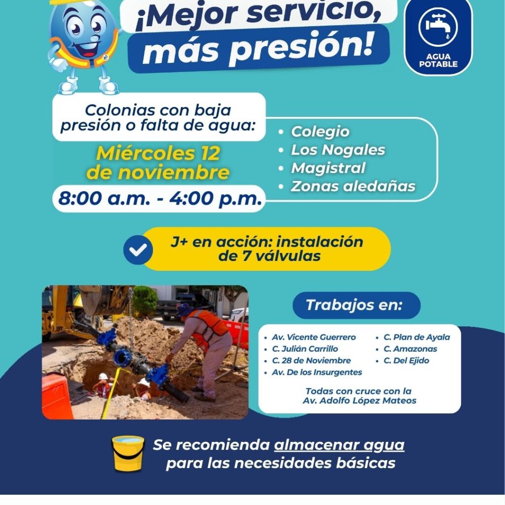 Este miércoles 12 de noviembre, el Departamento de Eficiencia Física de la Junta de Agua y Saneamiento de Juárez, instalará 7 válvulas de seccionamiento, como parte de las acciones de sectorización del distrito 5.Los trabajos se realizarán el miércoles, desde las 8 de la mañana hasta las 4 de la tarde, en los cruces de la: Avenida Vicente Guerrero, Julián…