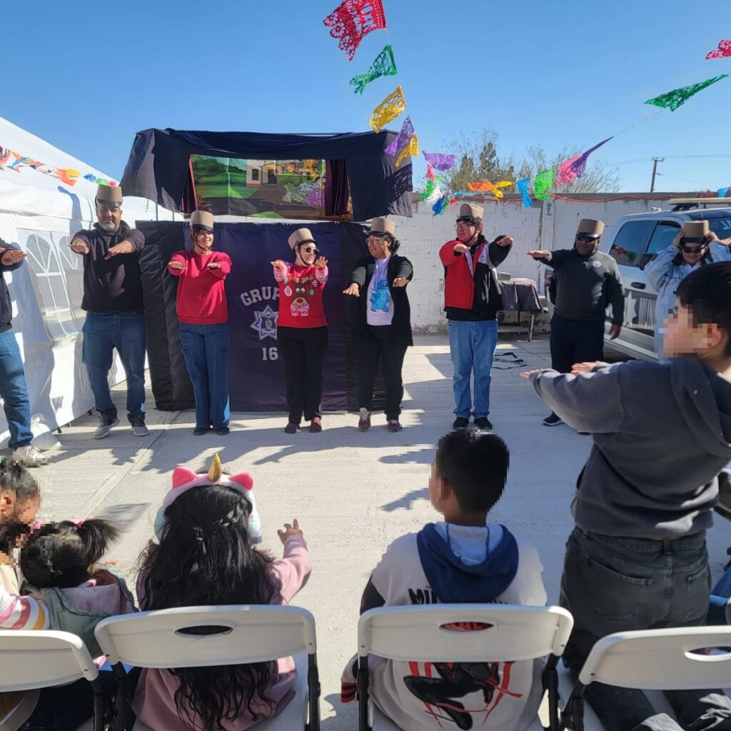 Martes 16 de Diciembre del 2025.- Elementos adscritos a la Dirección de Prevención Social de la Secretaría de Seguridad Pública Municipal organizaron una presentación de “Teatrino” en la Capilla de la Candelaria, como parte de las actividades de una posada navideña organizada para los niños que asisten a clases de catecismo. La puesta en escena, titulada “El lobo bobo”, fue…