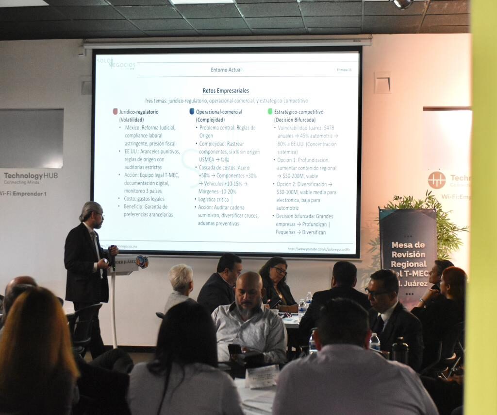 El Gobierno del Estado, a través de la Secretaría de Innovación y Desarrollo Económico (SIDE), encabezó las Mesas de Revisión Regional del T-MEC 2026, ejercicio convocado junto con el Consejo de Desarrollo Económico Regional Juárez A. C. y la Secretaría de Economía Federal. Al encuentro asistieron representantes del ámbito empresarial, organismos y cámaras productivas. El titular de SIDE, Ulises Fernández…