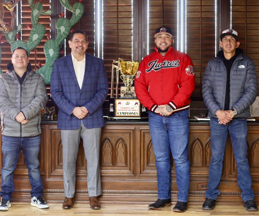 Viernes 9 de Enero del 2026.- El Presidente Municipal, Cruz Pérez Cuéllar recibió en su despacho a integrantes del equipo de beisbol Indios de Juárez, quienes presentaron sus planes rumbo a la temporada 2026 y refrendaron su compromiso de defender el campeonato de la Liga Estatal de Beisbol, luego de una sequía de 25 años. Alfonso Venegas, gerente deportivo de…