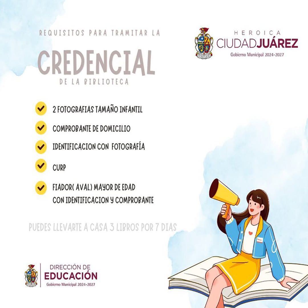 Viernes 9 de Enero del 2026.- La Dirección de Educación invita a la población a tramitar su credencial en las Bibliotecas Públicas Municipales, con el objetivo de que las y los juarenses inicien el año cumpliendo uno de sus propósitos más comunes: leer más libros.