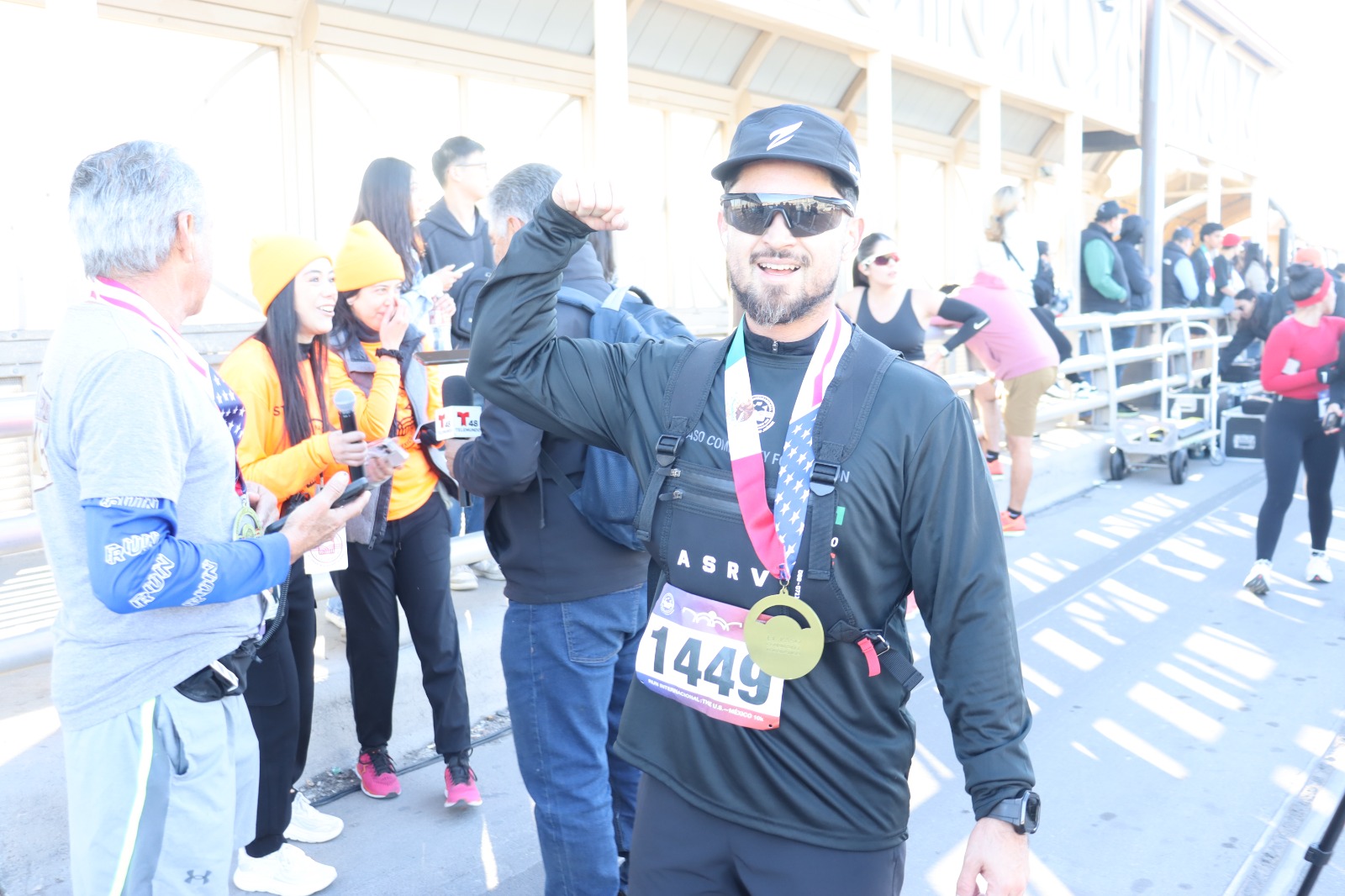 Una vez en la línea sobre el puente internacional Paso del Norte, ahí los corredores cruzaron la meta al son de la música de mariachi que los esperaba al igual que amigos y familiares felices.