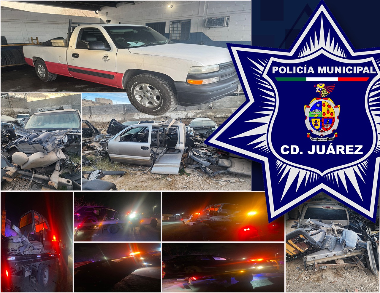 Al arribar al lugar, los oficiales detectaron un supuesto taller mecánico en cuyo interior se apreciaban diversos vehículos, carrocerías y autopartes, por lo que, ante esta situación, procedieron a consultar las series vehiculares en el Sistema de Plataforma Juárez, informando el analista en turno que los siguientes automotores contaban con reporte de robo: